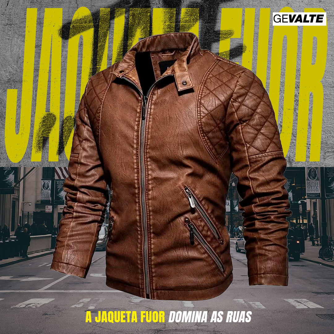 O casaco Fuor é fabricado em couro vegano de alta qualidade, desenvolvido para oferecer um acabamento premium que imita a textura e a aparência do couro genuíno, mas com um enfoque ético e sustentável.